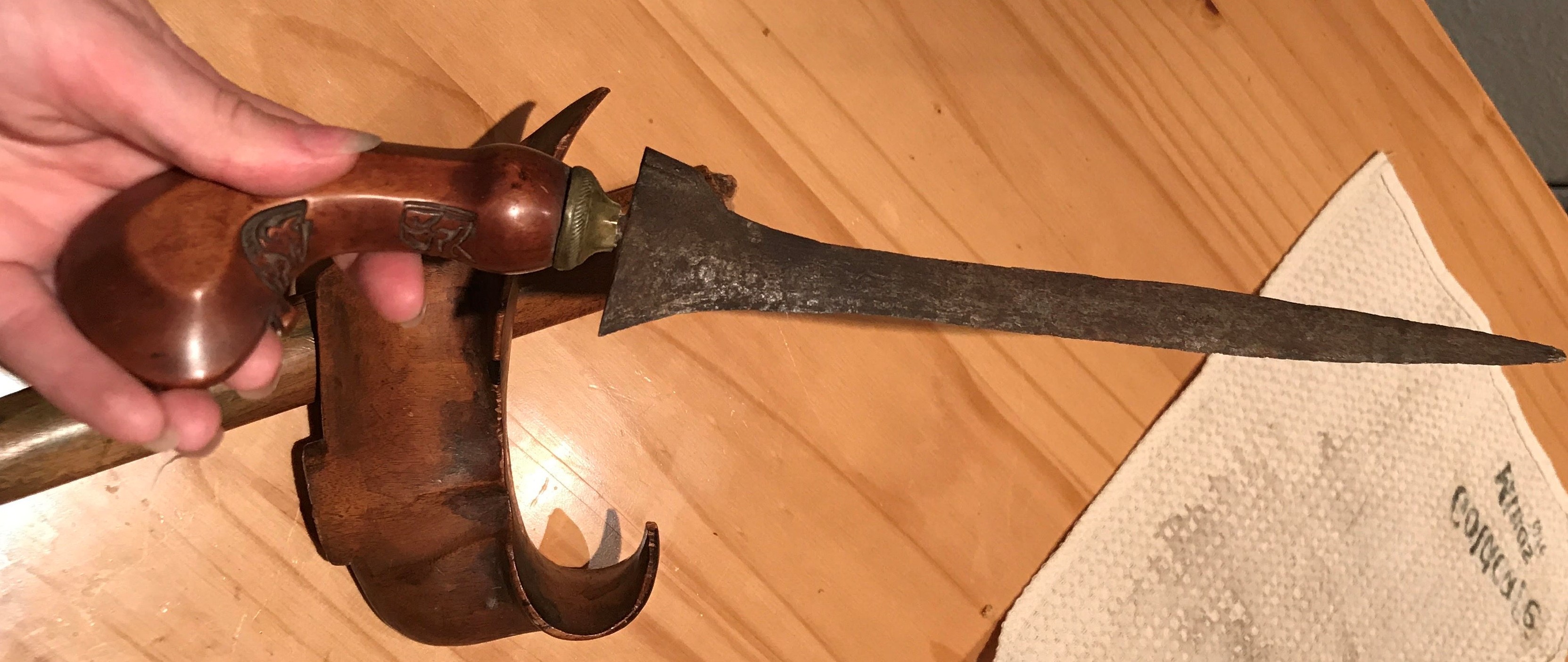 The sword is so rusty that I started to think that my boyfriend might be king Arthur. The sword is probably the one he took out of that famous rock. Nothing wrong with my boyfriend being a hero or a king. It might become a problem only when it makes me feel uncomfortable to fall asleep.