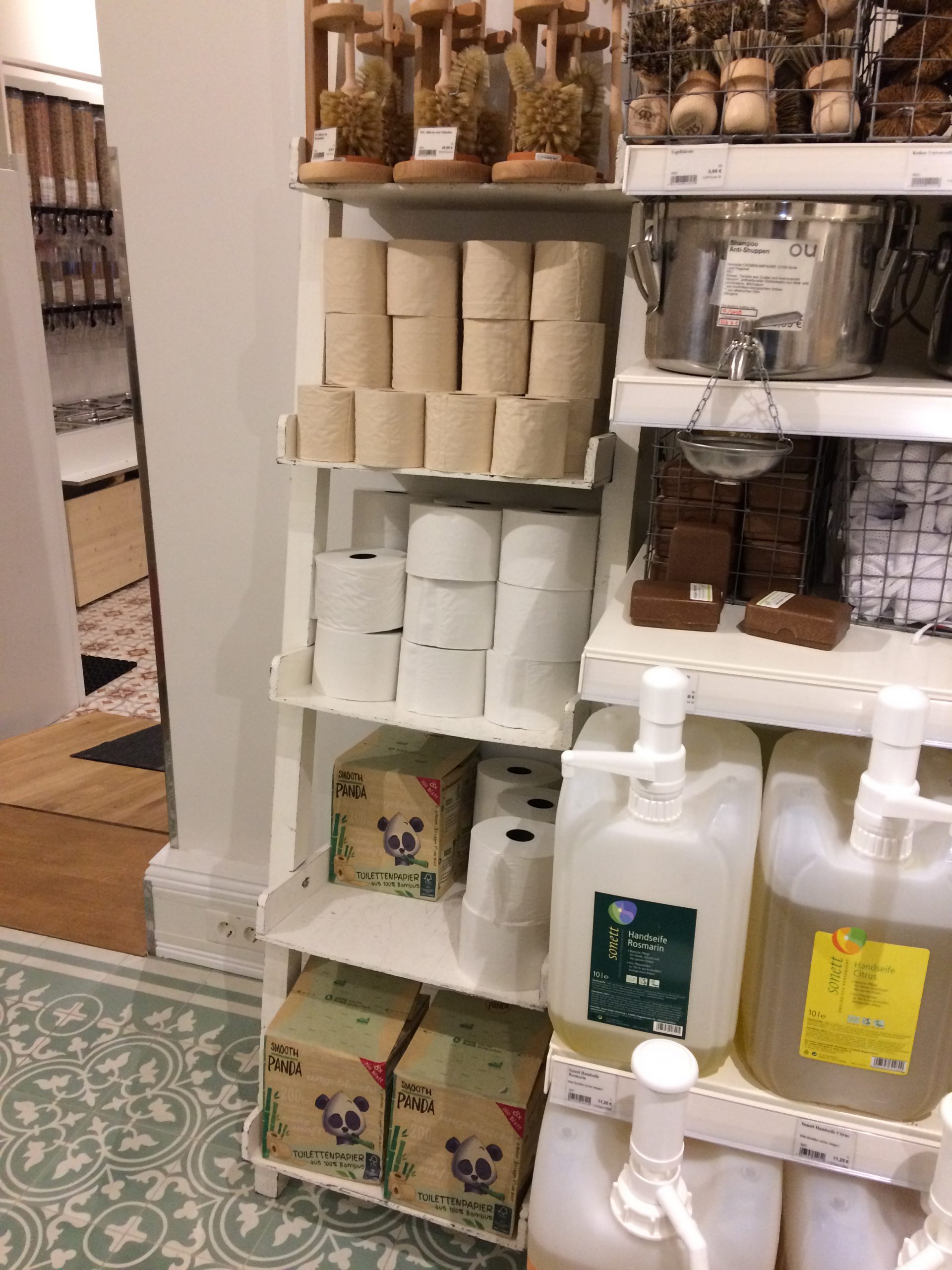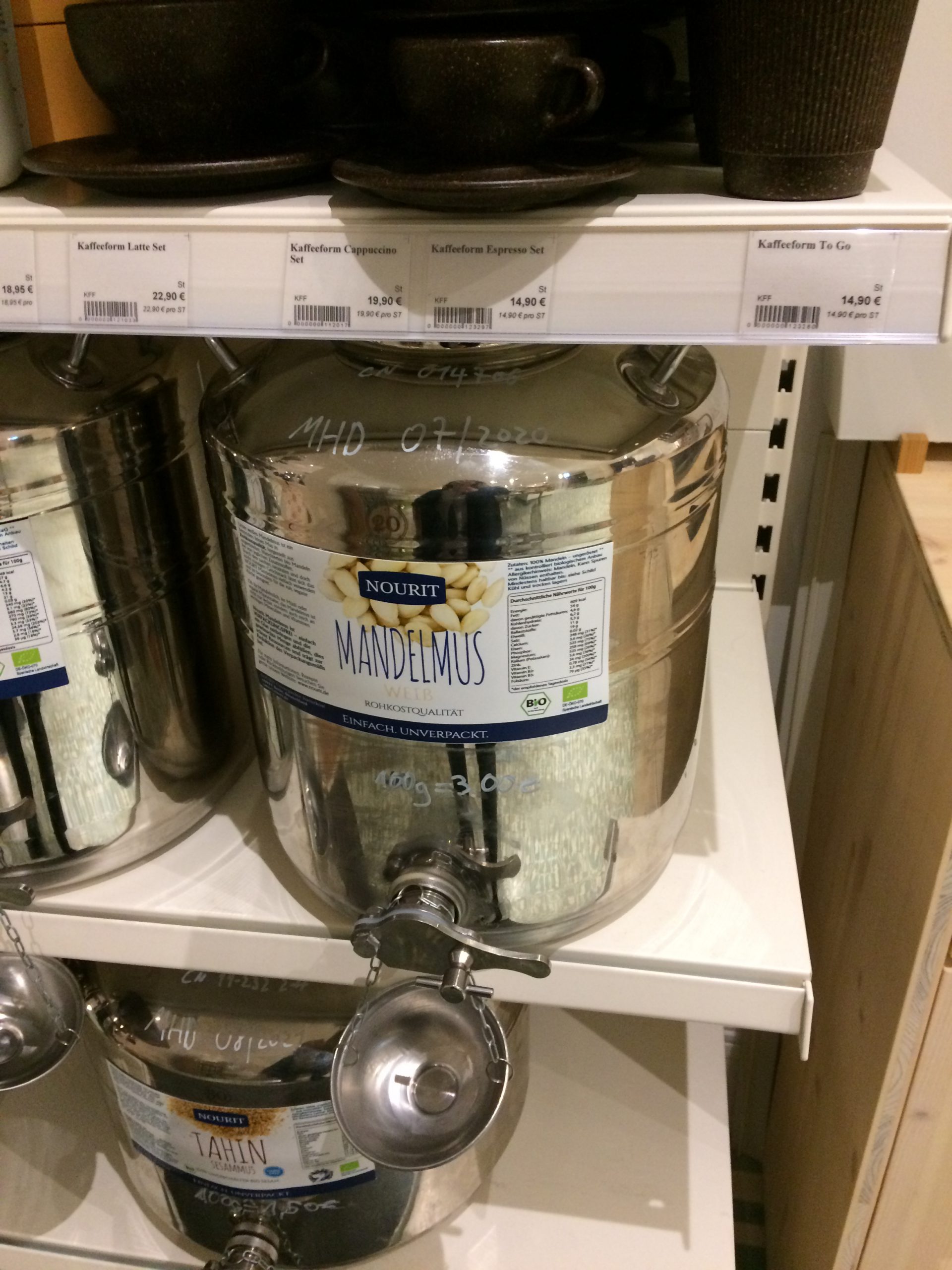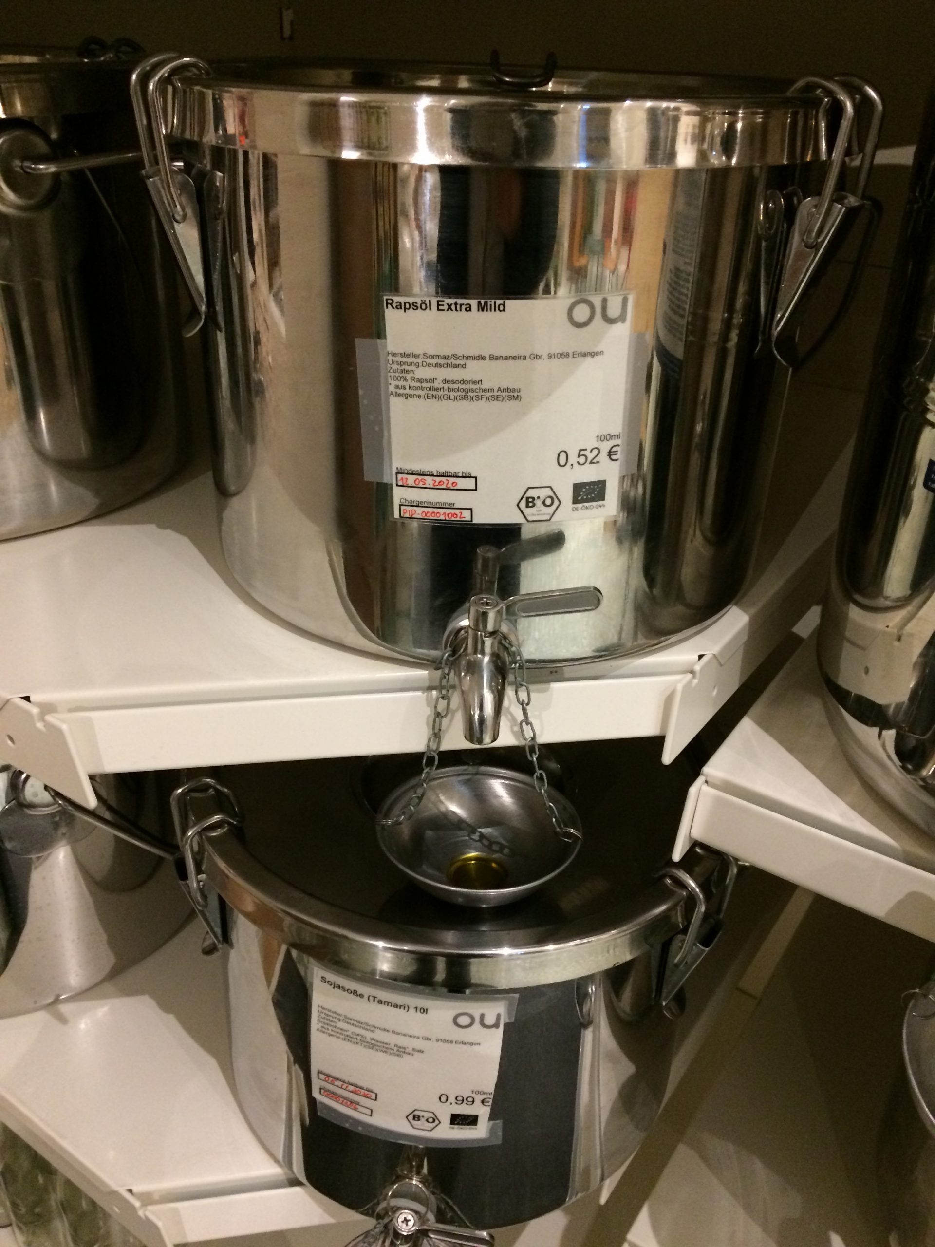 Another shop we visited a few times was the Original Unverpackt shop. This one was a bit pricey, but it was a good choice for oil on the tab. Bio Company did not offer this. It also has a large offer for unpacked toilet paper, shampoo, and washing detergent.